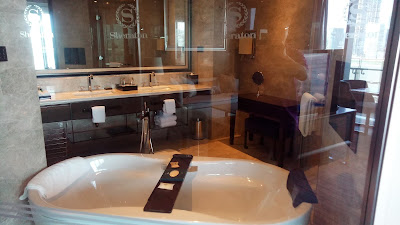 今次阿迪哥訂普通房Deluxe Room, City View免費升級至Junior Ocean Suite開放式假套房,一進房右面係廁所及隱蔽式衣帽間,廁所跟浴室完全分開,呢家酒店所有套房浴室備品都係使用L'Occitane嘅essential oils 系列,係阿迪哥其中一款很喜歡嘅沐浴備品,比起同一牌子其他酒店都常用嘅馬鞭草系列香味更佳,備品亦提供漱口水及牙線、牙具套裝係使用高露潔、連剃鬚膏都係用吉列的,呢方面很讚。