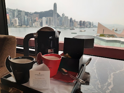 由於阿迪哥訂房時已訂Club行政待遇、因為行政酒廊已經關閉,因此下午茶及happy hour均在The Lobby Lounge大堂酒廊享用,The Lobby Lounge最有名就當然係坐擁維多利亞港全景與及其英式Afternoon tea。