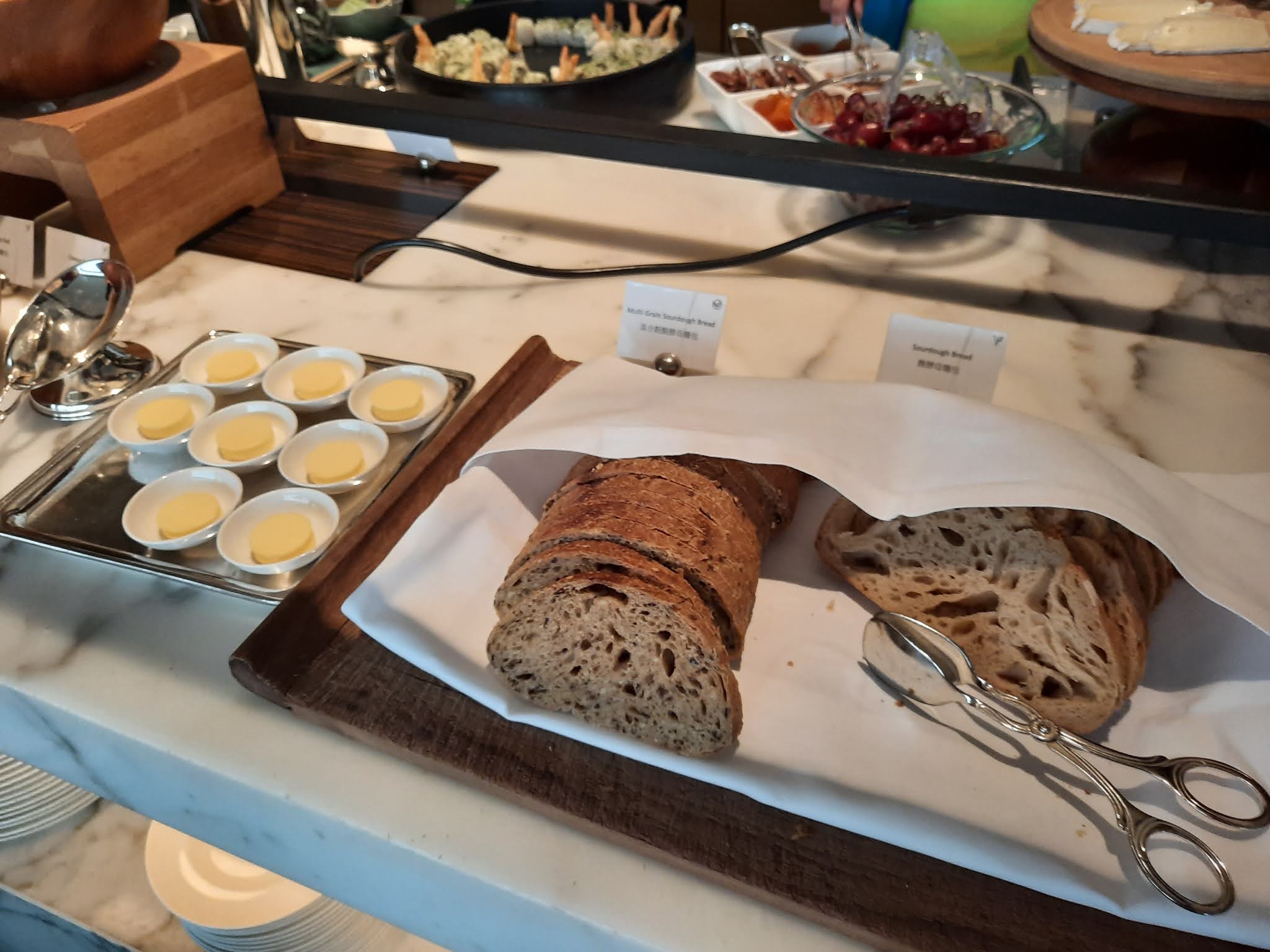 阿迪哥其中一日早餐於Grand Café享用,由於長週末關係早餐用餐時間分為三節,需要預早透過二維碼預留時間,餐廳以L型設計,因此用餐空間及自助餐擺放食物區域是長方型,自助餐食物區一共有三個獨立區域。