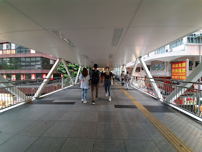 | 到達天橋盡頭,但不要進入入境事務大樓 |